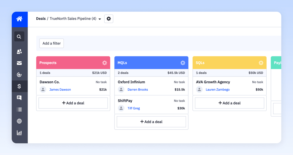A built-in sales CRM makes it easier to manage deals, but also connects to ActiveCampaign’s powerful automation engine